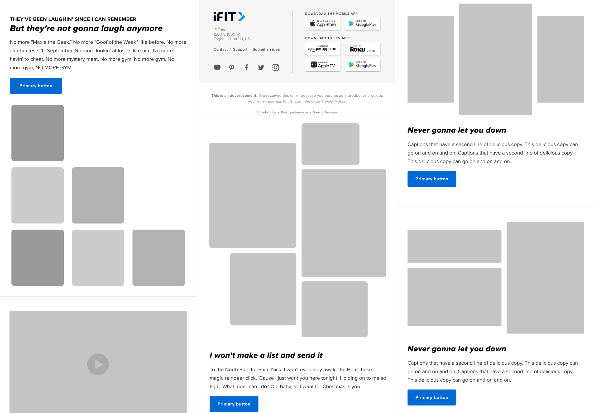 iFIT was migrating from Sketch to Figma, which meant rebuilding the email component library from scratch. The original templates had been in use for over three years and were showing their age. This wasn't just a migration; it was an opportunity to rethink how the team built emails as a whole.